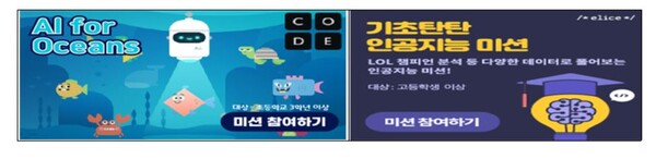 ❹ 끝으로, 초등학생 저학년부터 고등학생까지 체험하기에 적합한 인공지능 부문은 ‘기초탄탄 인공지능 미션’, ‘AI For Oceans’ 총 2개의 프로그램으로 구성되었다.